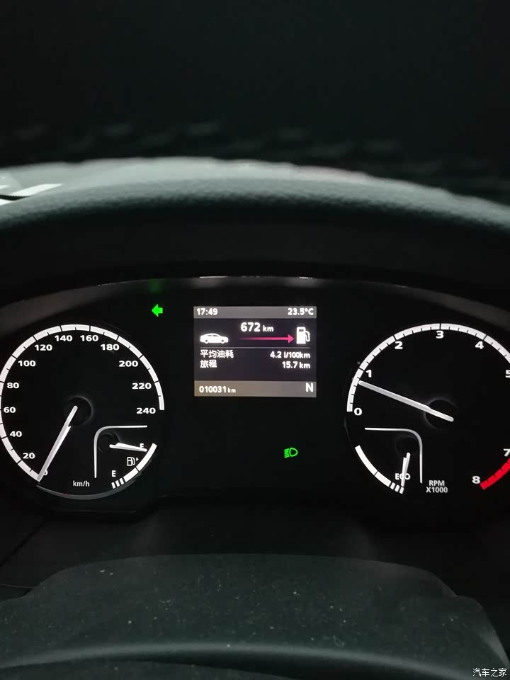 这是在省道上用手动模式开出的油耗,拍的时候正在等红灯,后来上高速了就没继续。