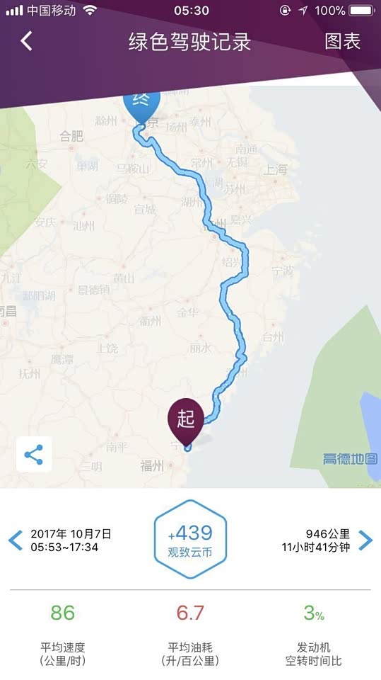 观致逸云是一款能给自己车多算油耗的神奇软件,图上是一次启动、熄火的之间的路程