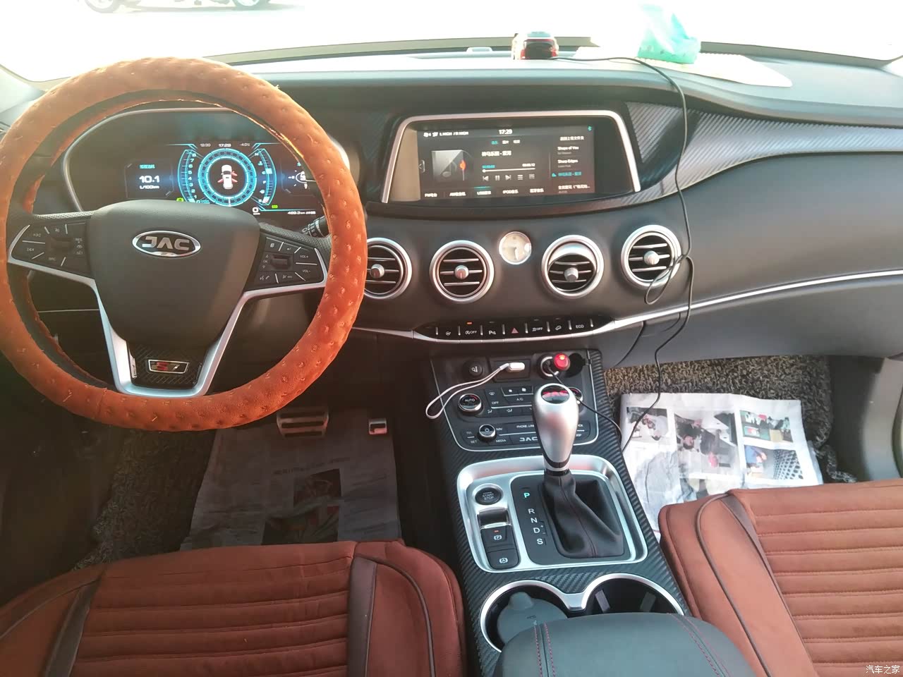 整体来说内饰方面无可挑剔,特别是在这个价位的车来说,用料很是厚道,软搪塑材质的中控台,仿炭纤维的流线,中控表,综合来看很是上档次!