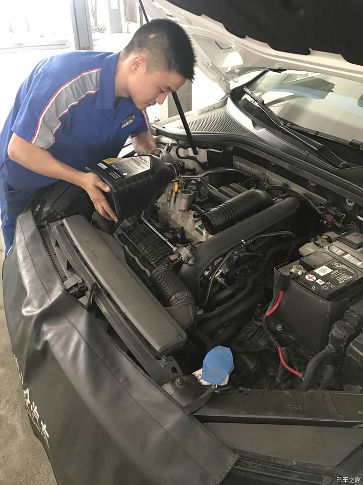 正在加新机油,师傅讲我买的机油算很好的了,听了我会心一笑