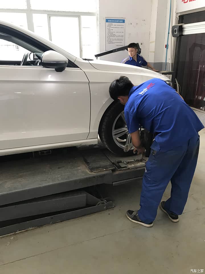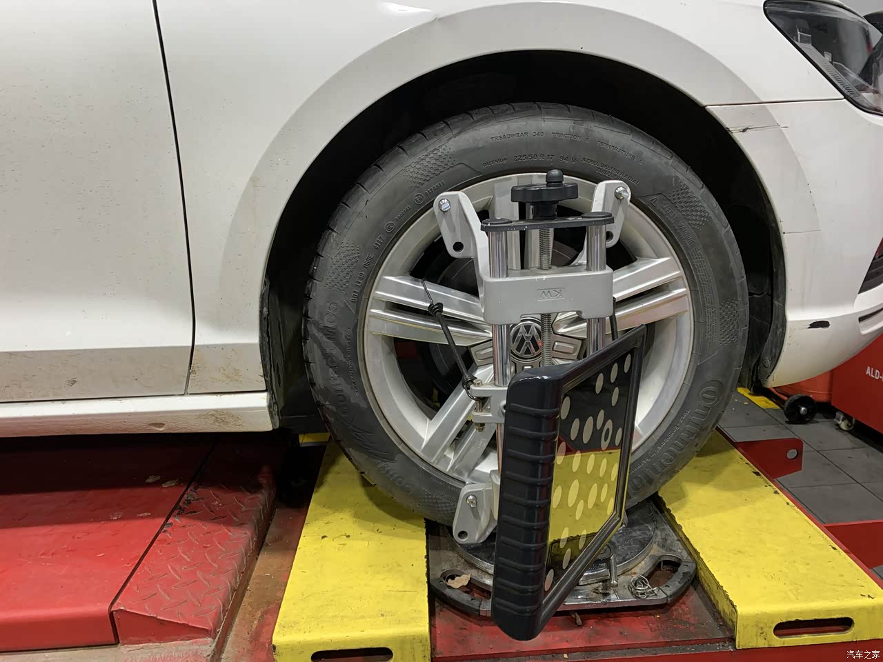 这是师傅正在装四轮定位设备,感觉很高级,希望能解决问题