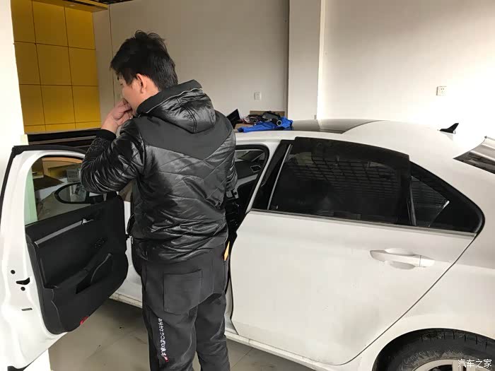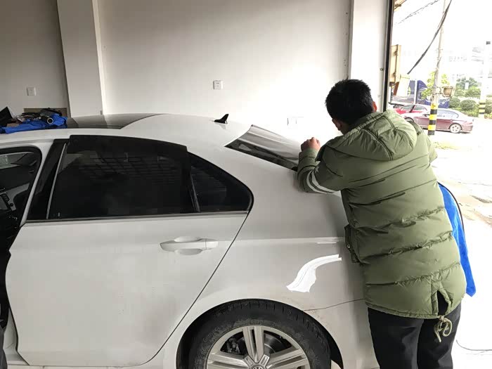 车在贴膜,师傅手艺还是很可以的,总共花了三个小时。