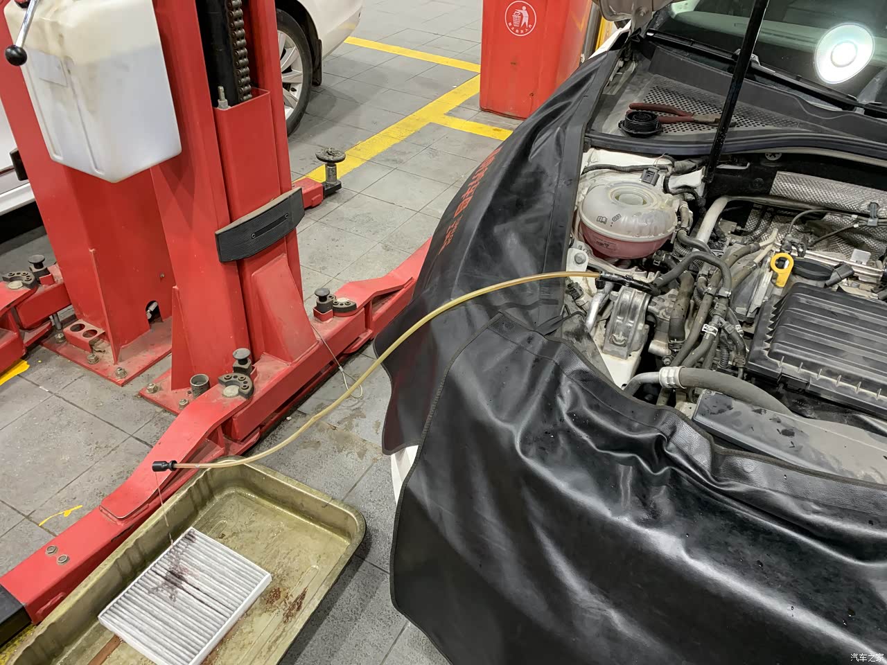 正在放机油,颜色看起来不是太黑,首保换全合成,过了7000KM再换了全合成机油