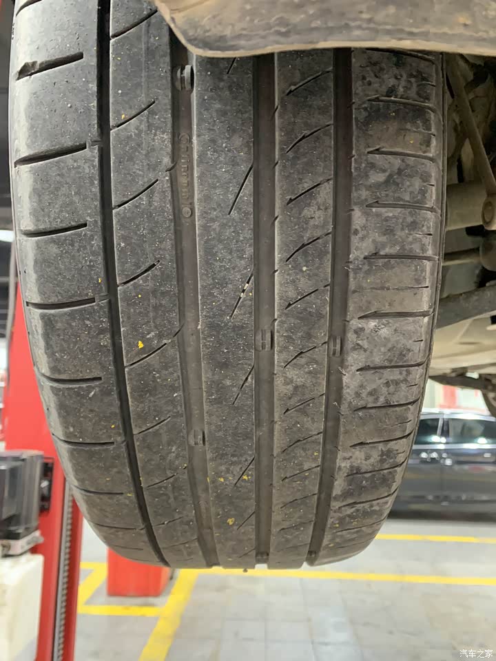 目前存在的一个问题:吃胎。这个之前我并不清楚,因为一万多公里后,感觉整车减震系统比新买的时候差了很多,尤其是脚放在油门踏板,能明显感觉到脚步震动,我也很纳闷,也在网上询问了各位大神,但是没找到原因。最后到了店里,师傅看了四个轮胎,讲原因是因为轮胎内侧边缘磨得高低不平,进而影响驾驶体验,我才恍然大悟。