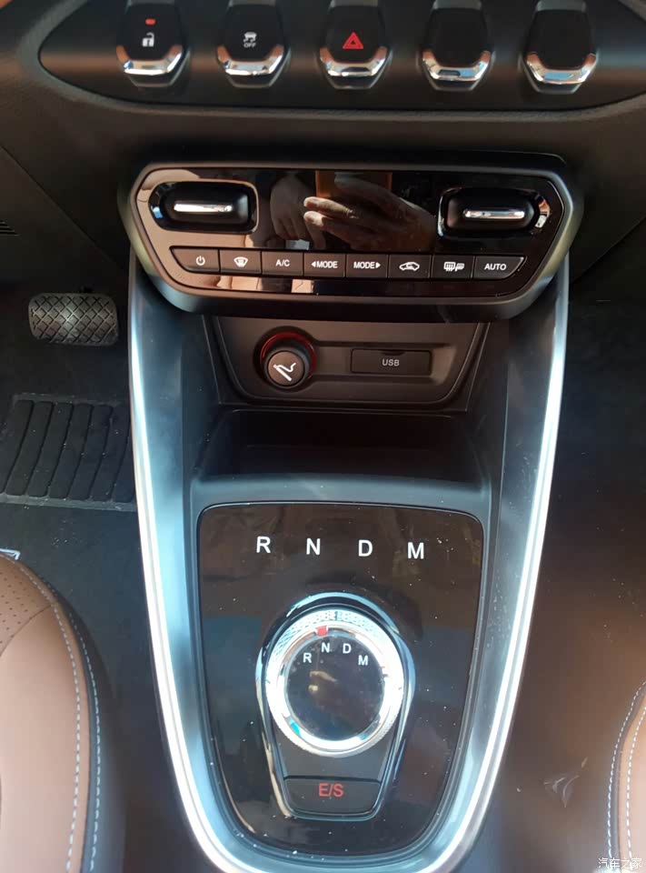 中控特别时尚,特别是那排战斗式按键,有兰博的气质,旋钮看着也挺舒服的。座椅配色也很不错,特别是中控一条包皮是跟座椅同色的,很点缀。