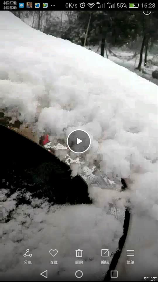 这是第一天的大雪就积了这么深,最后压在车上的雪都有5.6厘米,一直压在上面七天,一点事都没有,说明车是很结实的。