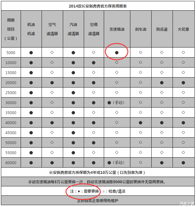 按照之家的奔奔2014保养手册看,首保是要更换变速箱油的,大家最好问一下4s店,我都不知道我首保时是否给我更换