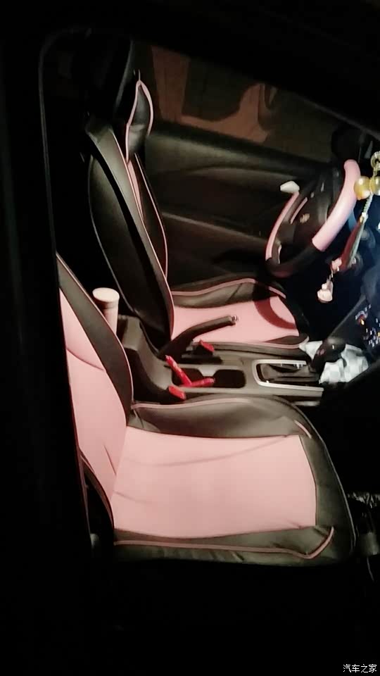 内饰风格都很满意,个人比较女孩一点。在网上买了一个粉色座套,还有4S店送的抱枕,看起来很漂亮,好多人夸了,整洁美观。