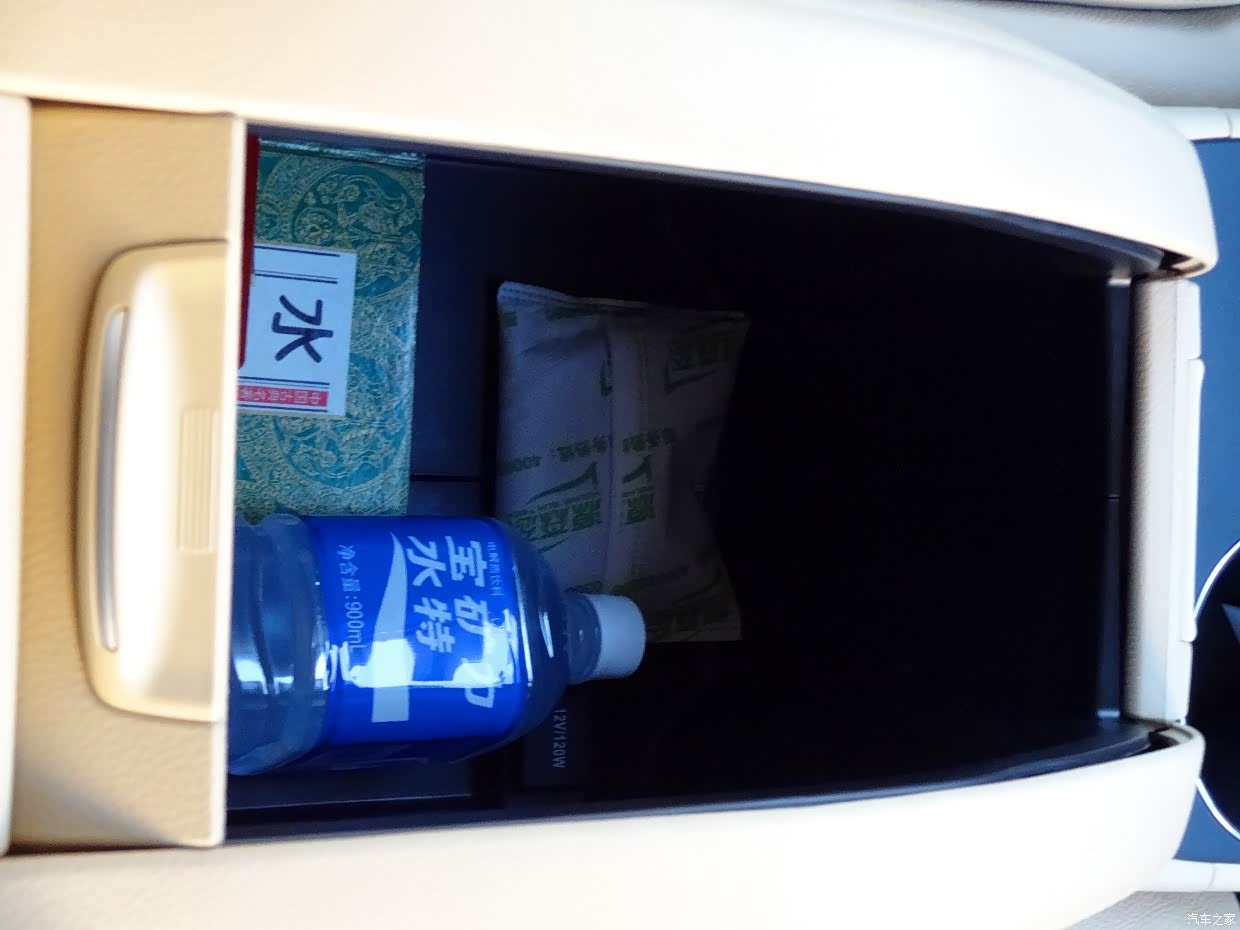 前排中间巨大的扶手箱,各种媒体评测的时候都介绍了。。。至少放几个大可乐瓶没问题。