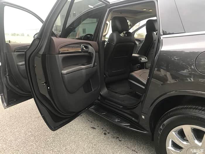 别克的标准化前脸相当耐看,车屁股上的尾灯,有了装饰条,加上本身很饱满,有点卡宴的感觉。标配的踏板上用的不是很大的BUICK而是箭头,给人一种动感的感觉。9幅的轮毂给人很强烈的安全感,感觉非常牢固。车顶的行李架对于我而言是摆设,但是这摆设必须有,丰富了车顶的线条,使车子更加的好看。