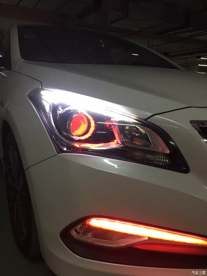 我买的是智能型只配卤素灯,太暗了,被人远光闪下怒闪人家都没效果,用了一年终于忍不了,改了海拉5、LED灯眉、蓝牙七彩恶魔眼、远光LED、近光氙气,改完走起路都自信了。
