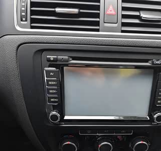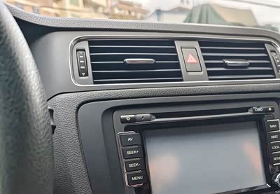 很大众的中控,黑色内饰,给人一种成熟稳重感,做工用料都比较不错,中控台上方都是软塑料的,摸上去手感不错,搭配的是一条银色的装饰板,时尚又年轻,再搭配车内车真皮座椅,一下子整体档次提高不少,挺不错的。高端大气上档次。
