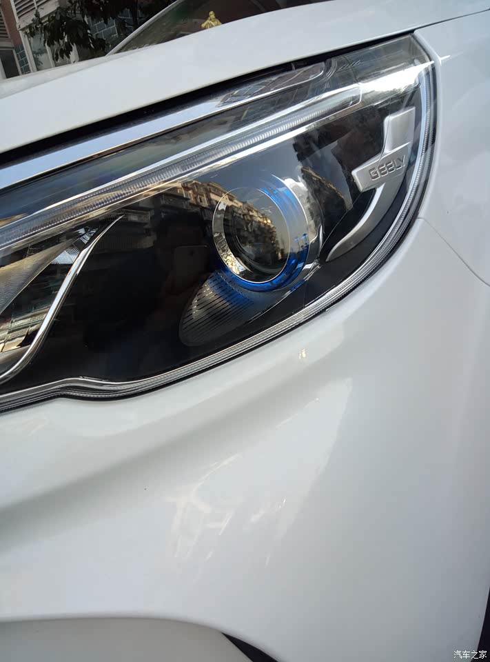 我选择的是冰晶白,是我喜欢的类型,大气,美观!吉利的车标也是我比较喜欢的,红色卡弦,有一种时尚的运动气息!