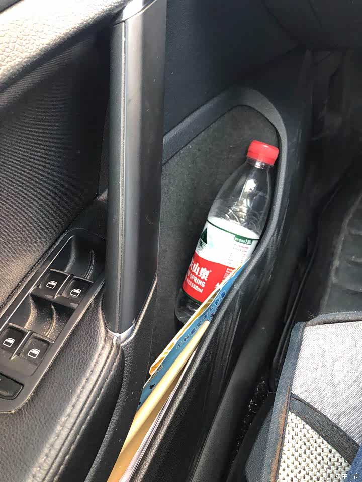 门板储物放3瓶水没问题,中央扶手箱放些细碎东西足够,手套箱也很大,整体储物空间很棒。