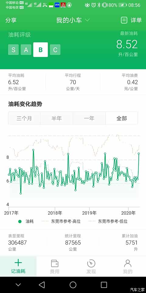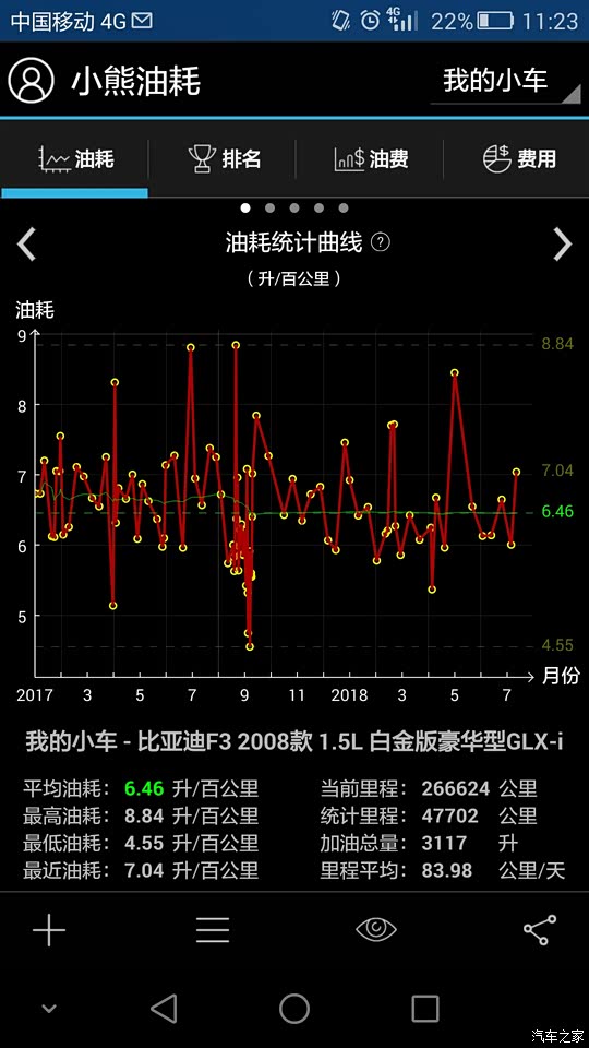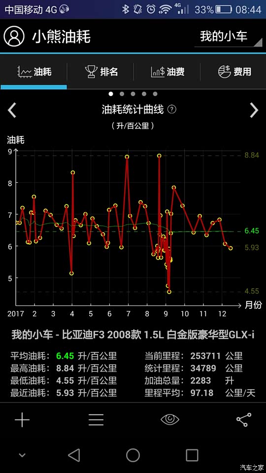 2017年开始的小熊统计油耗,8.7万公里的统计路程综合油耗6.5