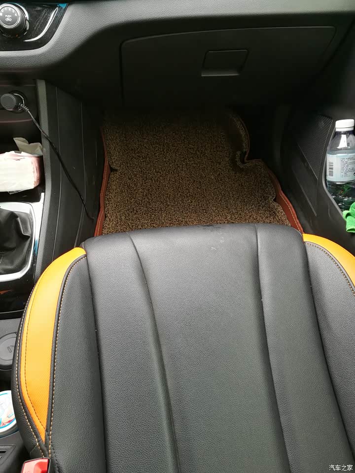 前边中控台是钢琴烤漆与硬塑料的结合,看上去比较高大上豪华一些,硬塑料美观差点事但是好在耐用,这个价位不奢求太多门边触手可及的很多地方是软皮革…再就是仪表台垫建议买黑色黑边,一开始用的黑色红边开车比较容易分心,仪表比较好看LED背光显示,但是可以吐槽中控扭特别难看吗?很low!希望改进!方向盘是我们的好朋友,我托朋友买的某牛X品牌的牛皮手缝方向盘套(后续放图)不是特别配套但是手感无敌!这大概也是我车上最值钱的装饰了,在4s店交的工时费让师傅缝的!装饰都是自己买的,大包围脚垫和丝圈,