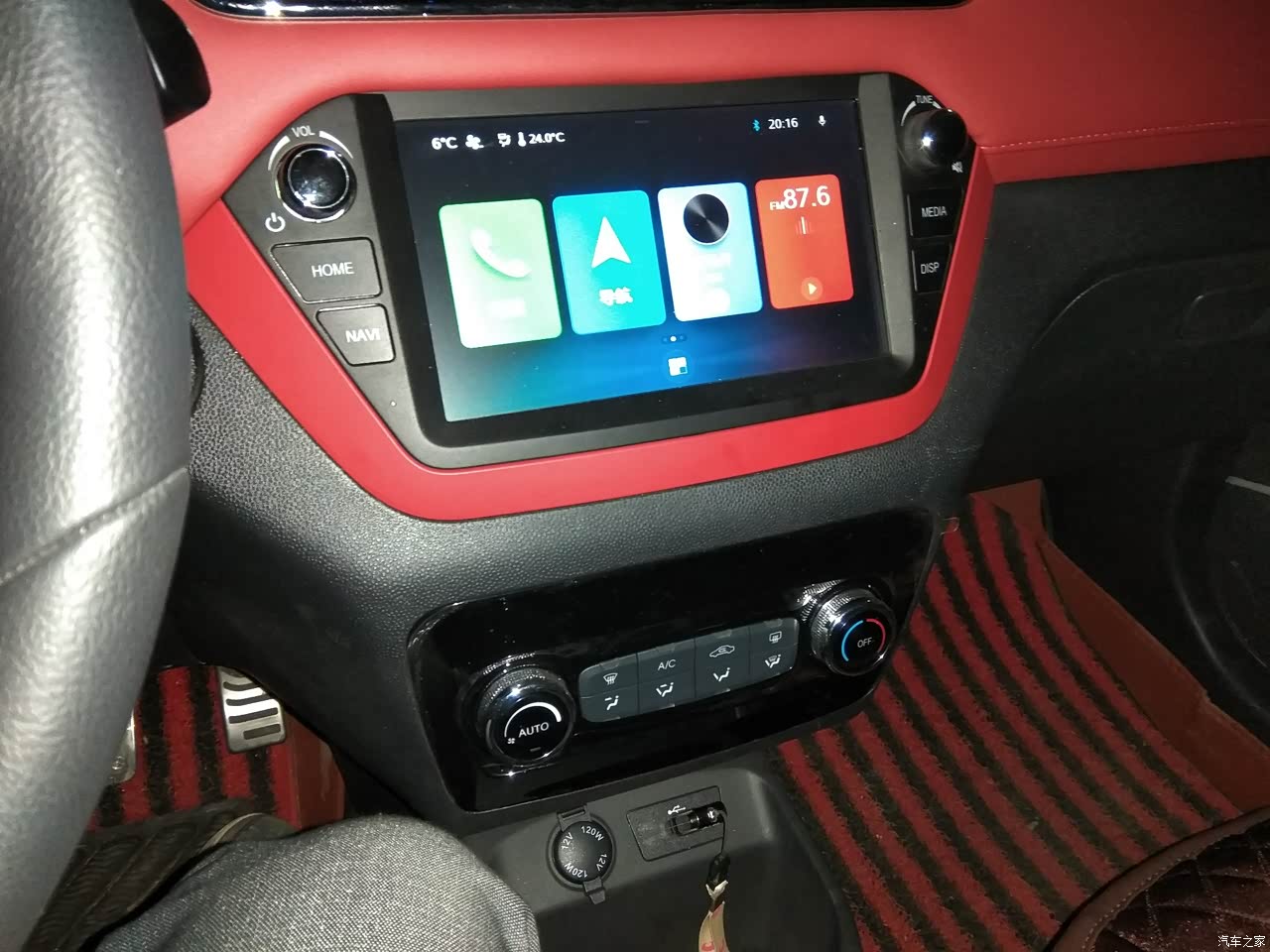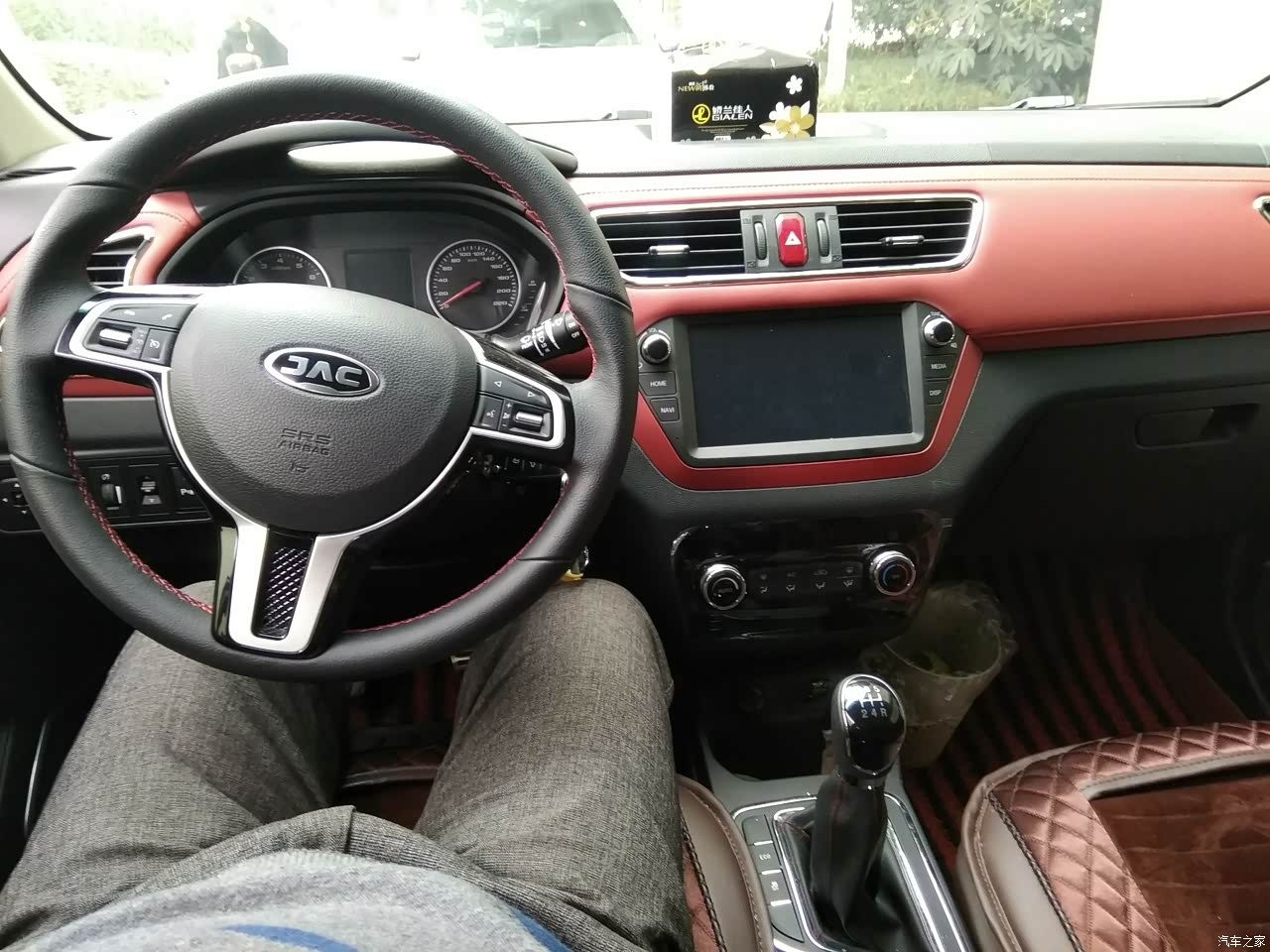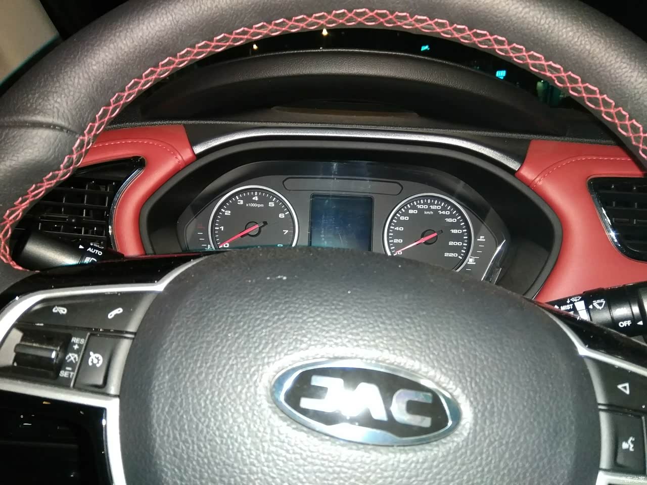红黑搭配的内饰还是挺耐看的。虽然大部分是硬塑料的但是手能碰到的地方,都是用软皮包裹的,这一点,非常不错。仪表中央那个八英寸的显示屏,看着还是有点高大上的感觉。新车有异味,不过开窗行驶几天就没有啦。