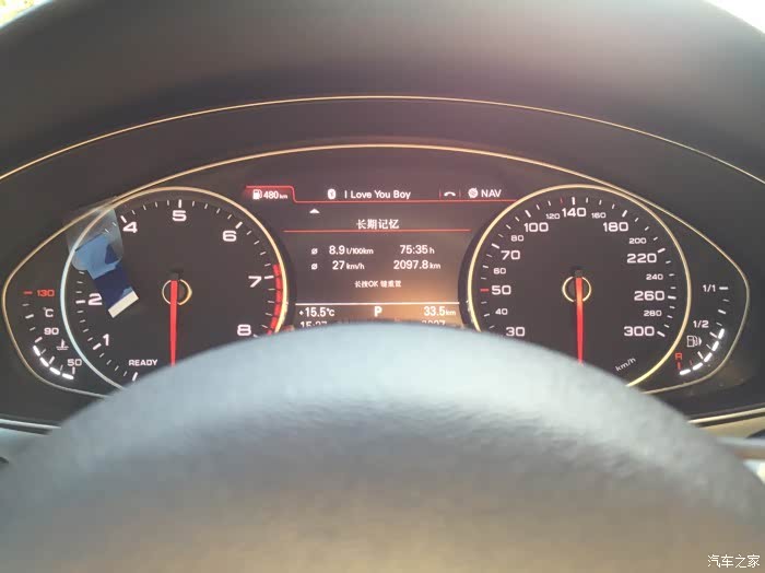 日常国道跑得多,高速也比较经常,因为国道的路有渣土车,经常看到石子弹到车身,新车比较爱护一些,难免舍不得。长期油耗现在是在9个油,高速能维持在7个油左右,国道正常开8个油左右,市区的油耗10到12个不等,看平均速度。对比我的锐界起码差了4个油每百公里,所以油耗这方面我觉得奥迪控制得还不错。