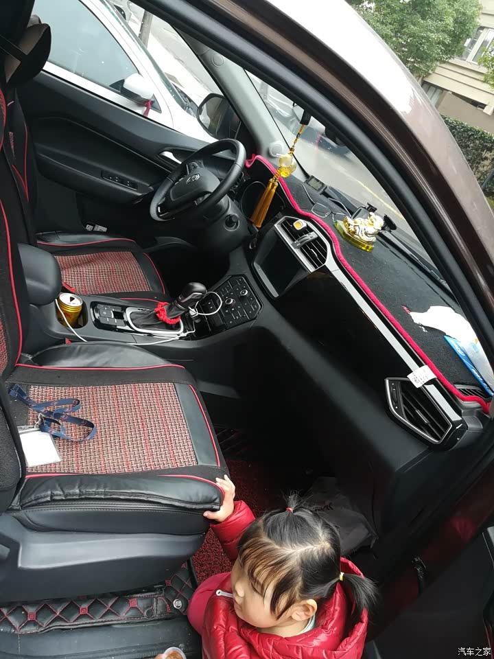 后面两个小孩,两个大人感觉刚好,腿部可以半伸,老婆感觉后面不拥挤很舒服,所以空间给满分, 前面空间我感觉还好了,可能每个人开车习惯不一样,我喜欢包裹好一些,所以座位我喜欢往前放,1.8m身高80kg体重,感觉OK,座位放到最低,头部空间不到两拳。