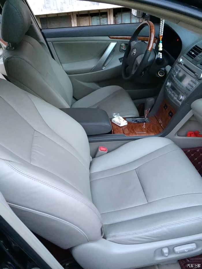内饰中规中矩,尤其喜欢凯美瑞的马鞍部,手刹变脚刹,中控那里省了非常多的空间,车内也看见更利索,木纹点缀,虽然有人觉得非常老气,但是我觉得非常好看,家用车的感觉。车内能触碰到的以塑料居多,10年前的用料可以理解,原车cd效果还是很不错的。
