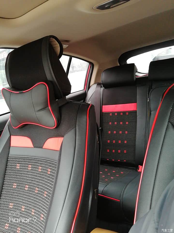 这个比起同级别的还是用了点心思的,时尚又不失成稳,成稳又不失大方,大方又不失细节。皮质的内饰,瞬间感觉高大上了,虽然只是仿皮,但个人觉得在同一个价位区间的车,没有几个是我能看得上的。 题外话: 说说这个4S店“送”的座套,先前看车的时候跟我说交100元,诚意金,如果在他们活动期间定车的话可以送1000油卡,100块不退,如果不买这100可以退。但我在活动期的最后一去交了定金,后面等贷款下来后,去交钱提车时给我变卦了,说是最后一天交定金的时候,他们记录油卡这个活动的工作人员下班了,所以就没记录上了,所以没得油卡了。然后就送了这套座椅套,和二次保养!