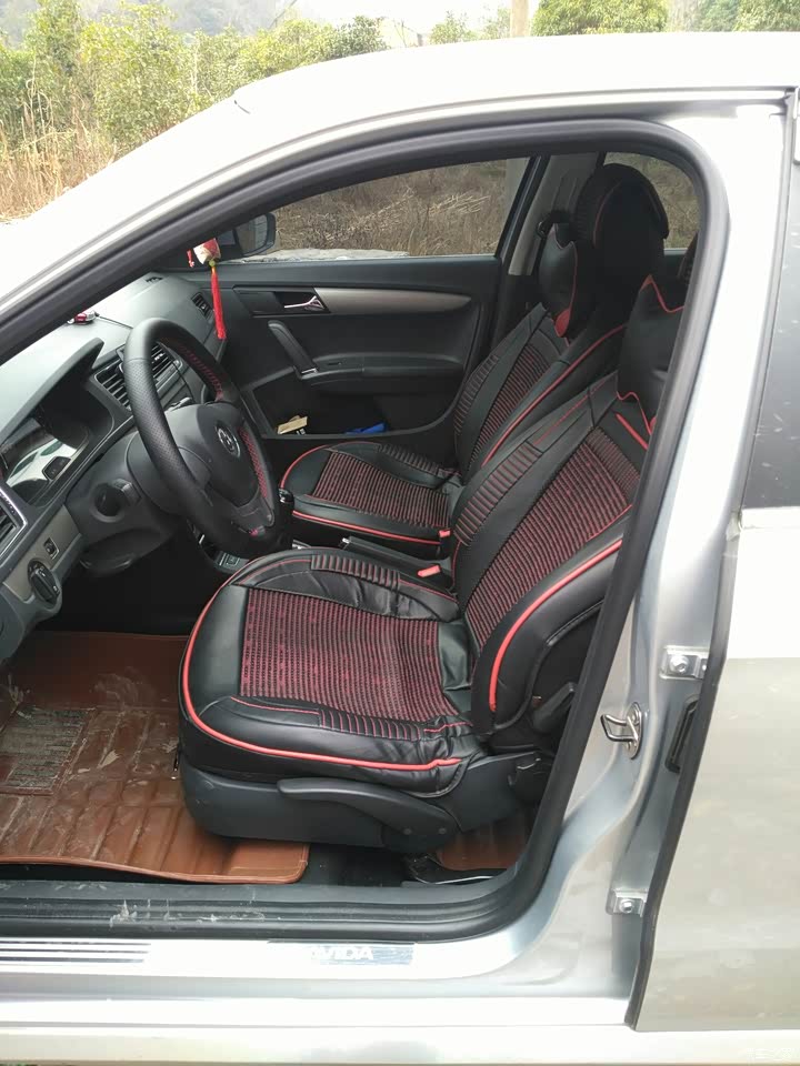 我选的是黑色内饰,整体简洁大方,中控台塑料的,门板上也是,没有用软性材料,座椅上看的到的地方都是皮革的,不过我们大多人都会再买坐垫回来包上,我选棕色的全包地垫,再加黑红色的坐垫,感觉很不错。没有异味,好像是玻璃有点异响,过颠簸路面的时候就能听到,刹车也有异响,特别是下雨天的时候。多媒体不能联手机的,手机里的音乐不能通过多媒体播放,还有手机充电的地方没有,只有一个SUB插头,充电也比较慢,多几个插口就好了!