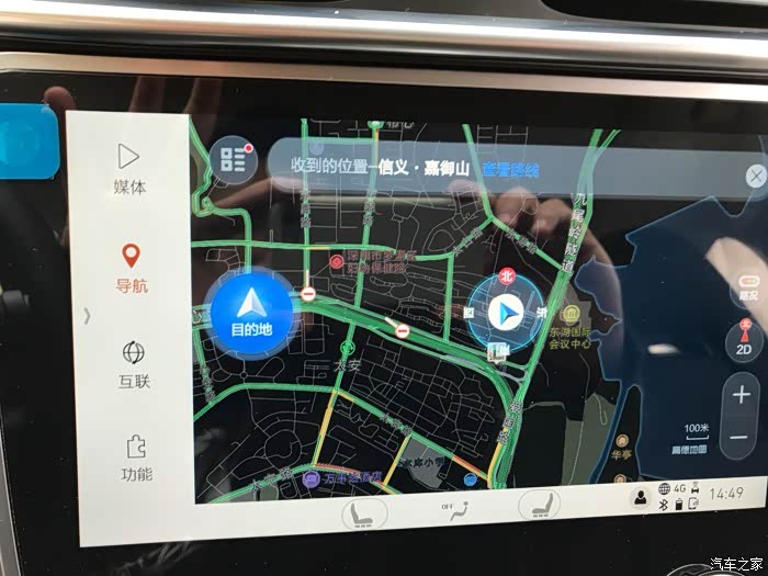 导航很好用,但是使用一定要设置一下不然默认是不走高速的。车载的是高德导航,可以和手机APP的互联同步,还能手机发送地址给车机。经过路口和岔路地图还会有一个小图弹出来指示道路。非常方便适合我这种不认路的新手。