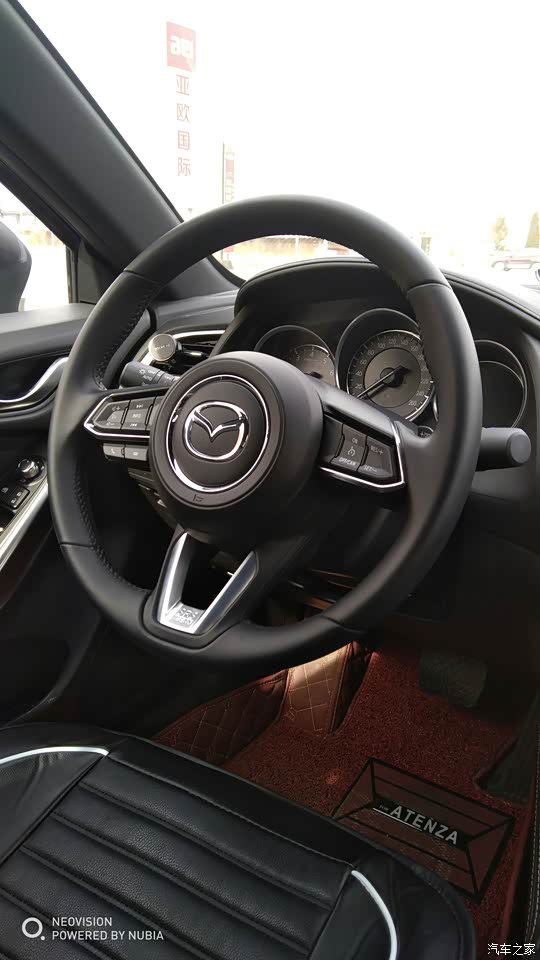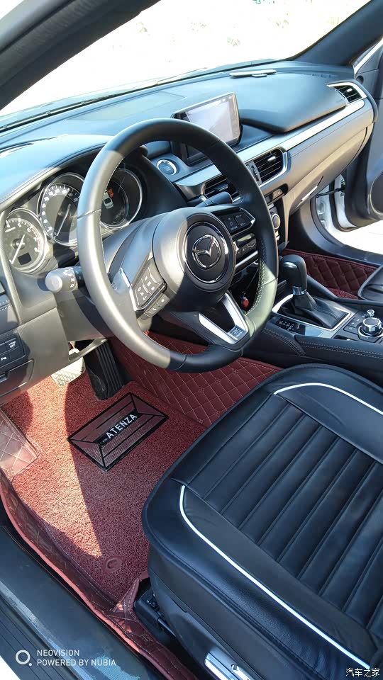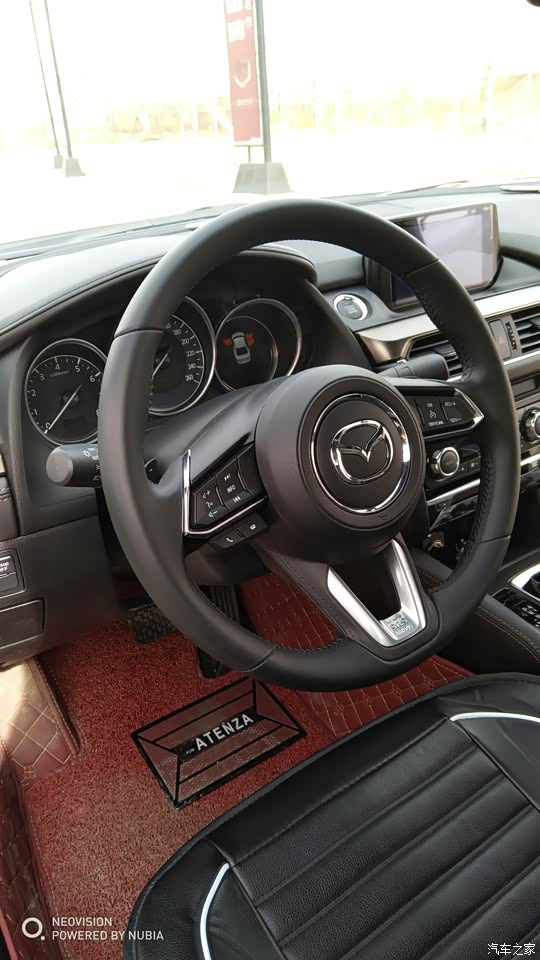 本人身高一米七,对空间要求不是太高,平时基本上是一个人驾驶,阿特兹的乘坐空间还是够用的,后排坐三个人也还好,只是中央的地台有隆起,坐在中间的人会略有不适,而前排则是足够宽敞无压力。