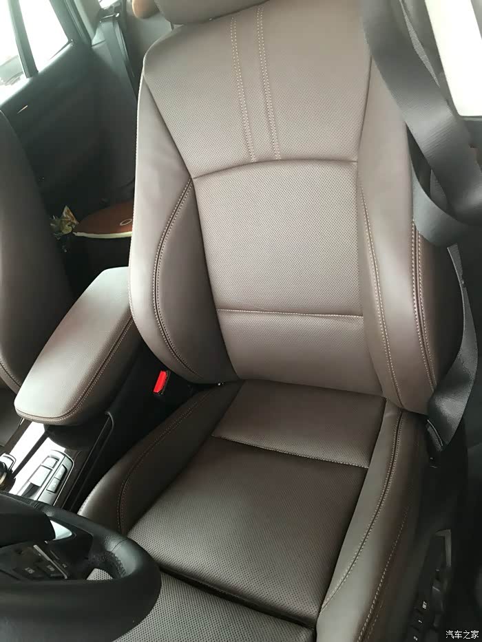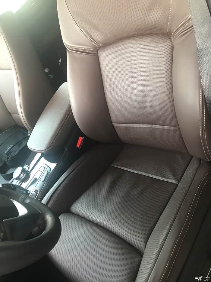 x套装的Neveda真皮座椅实在难受,简直就是折磨人:皮硬、粗糙、闷热异常,坐垫薄、传来的振动明显,尤其坐垫后部凹陷窄、凸起的边缘硌着右侧臀部麻木疼痛,坐垫短,使坐的力量都集中到后部,非常累人,背部上部的两条装饰竖条突出明显,硌着背部,总之开不到10km就开始一直在调节座椅,总是调不到舒服,尤其市区塞车更是折磨人,我真的怀疑这种座椅是有没有经过试驾的!一直在折腾这个座椅:买了不同的垫子4个、定做后部加厚的垫子、打孔皮加装座椅通风时加厚垫子等等,都解决不了硌着右侧臀部麻木疼痛。实在受不了,终于在约2万km时换了Nappa打孔皮高配运动座椅,从此终于消停了,可以好好的开车了,终于觉得X3是好开的车了。