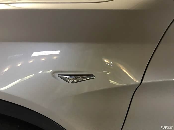 外观还是可以的。开始时,从侧面看,对新款X1、X3和X5有点傻傻分不清,后来搞清楚了,后三角窗斜向上的是X3,平直的是X5,对称的是X1。所谓天使眼非常醒神。因为被刮过,发现车漆还挺厚的。