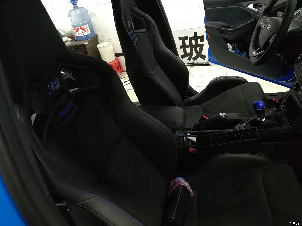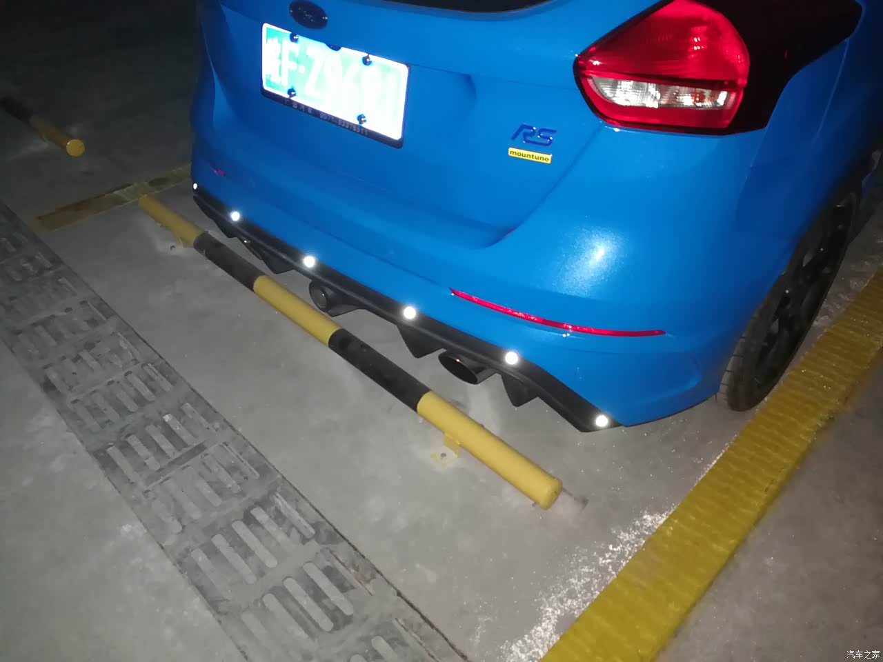 外观很满意,我车的颜色是标志性的氮光蓝,与普通福克斯不一样(是的,我们不一样~)。这个油漆很特别,在阳光下可以看到闪闪发亮的金属颗粒,在光线暗的地方又变成深蓝色。为了更好的保护车漆,我贴了透明车衣,看起来更亮了,也更耐脏,效果很好。空气动力套件有视觉效果,更有实际效果,不是那种汽配风的外观改装所能比拟的(前包围有刹车导流冷却孔,尾翼以及后包围的扩散器能够增加下压力)。