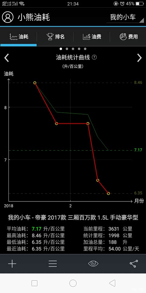 3740公里,一般城市上班开,过年回家走的国道,走走停停平均30码,回来走高速400公里表显6.8,实测小熊油耗7.1,并不是大家口中的油老虎,这个也要看技术,我首保之前的油耗外加新手,能这水平,说明这车还不错