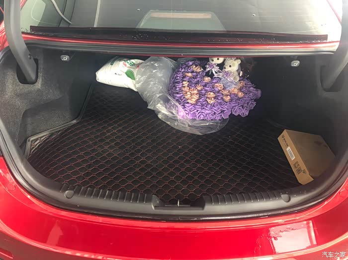 放东西的地方还是蛮多的,前排空调面板下面可以放下两到三个手机,毫无压力,中央扶手水杯架带限位器,大大的防止异响产生,不放水的时候还可以吧水杯架盖板拉出来,隐私性比较好,我每次离开车都要把那个盖板拉出来盖上安全。后备箱是挺大的,比较深,说实话有时候拿东西不是特别方便,尤其小物品,目前还没放过太多的东西,后备箱基本都是空的,只有一朵出婚车用的花,整体就是这样,考虑放东西的伙伴不需要担心了,绝对够你放了。