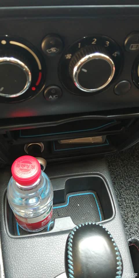 前排的可怜的储物空间,两个杯架和两个很小的储物格。下面一个储物格位置太低,行驶中使用很不方便。