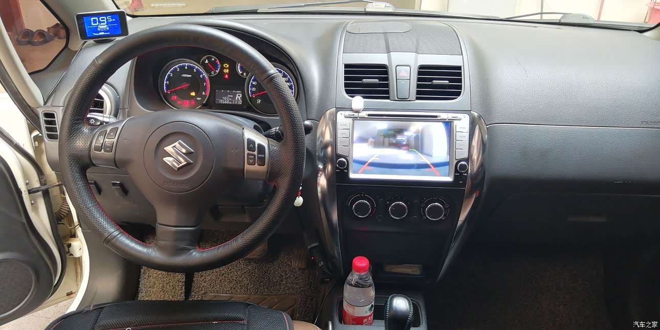 自己动手缝的真皮方向盘,档套。加装的倒车影像和倒车雷达。