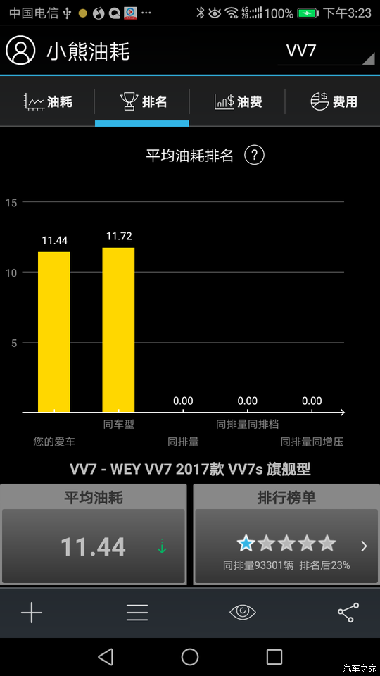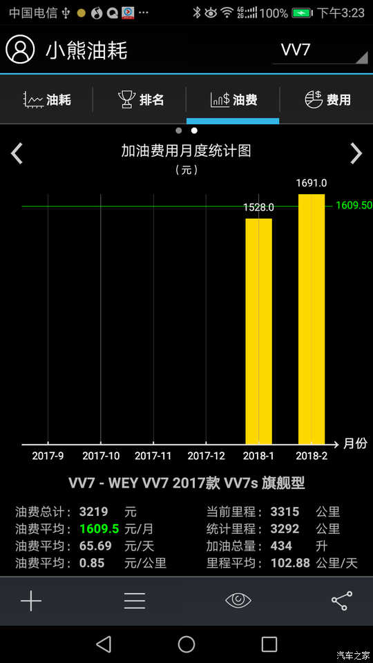 这个是3000多公里时记录的油耗,现在油耗已经降下来了。