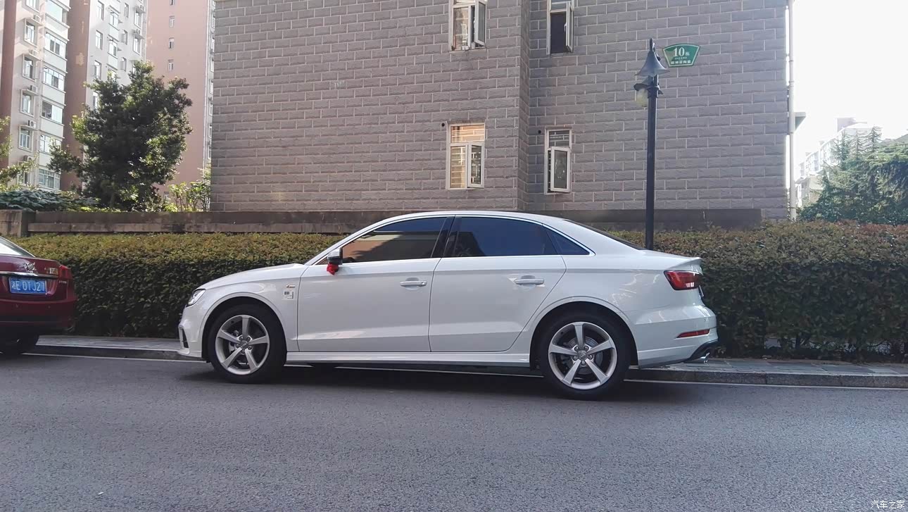 总体外观时尚,精致;奥迪灯厂名不虚传,灯光犀利,雾灯集成,和A4的样式基本一样。冰川白的金属漆。