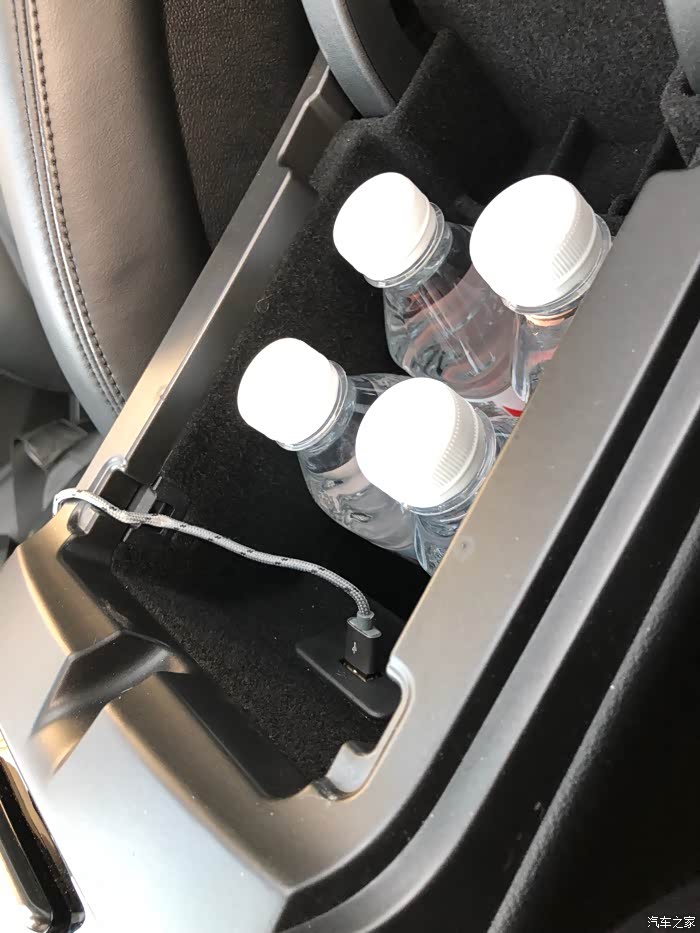 拿了几瓶596ml娃娃做对比 矿泉水大小下同 这是扶手箱位置