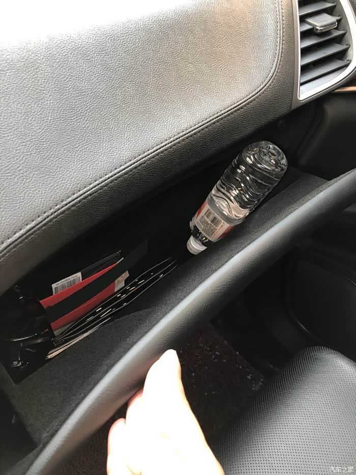 手套箱应该用来放毛巾手套之类的东西 用来储物应该差强人意 如图 上大下小 横向放5瓶没问题