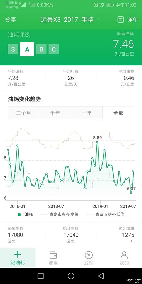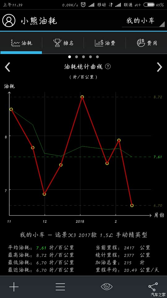 小熊油耗记录了我从提车到上一次加油的油耗记录。
