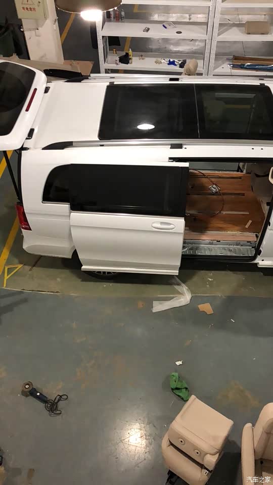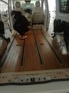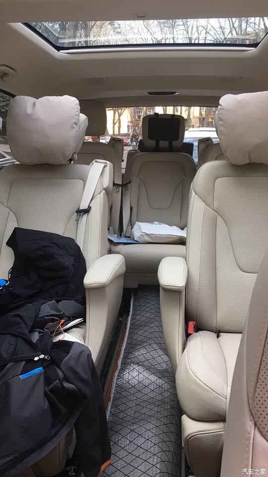 车身太长了,在路口和别人挤车的时候,左后很容易挂到别人!要多开多适应。后电尾门太大,打开都可以当屋顶了。隔音效果差,没有音乐感觉外面都是马在吼风在叫,一定要做全车隔音;第二排没有过道,一定要去把2边调开,晚点我写个帖子。