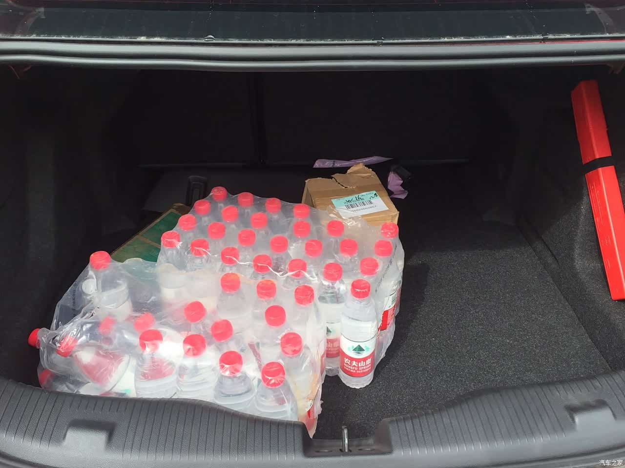 两件28瓶的矿泉水摆在那边才占了一点位置