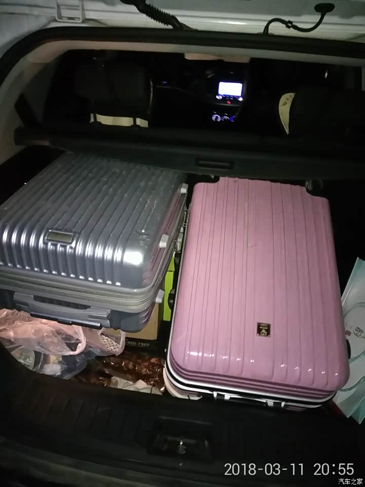 后备箱空间,感觉还行落了四个箱子,看不出来撒其实四个箱子了