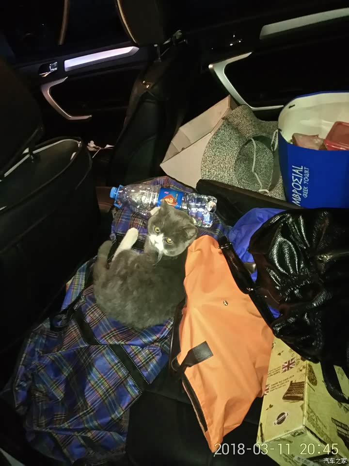 第二排放了几个袋子,一些吃的一只猫,位置很宽裕当然已经做不了人了,收拾收拾,还可以坐两个