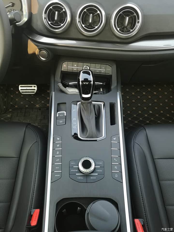 内饰整体不错!大量软性包裹、双缝线做工精细,颜色也漂亮,中控台漂亮、空调出风口个性且实用性强,钢琴烤漆和拉丝设计从一定程度上提升了档次,唯一美中不足的是软性包裹的用料质感不是太高
