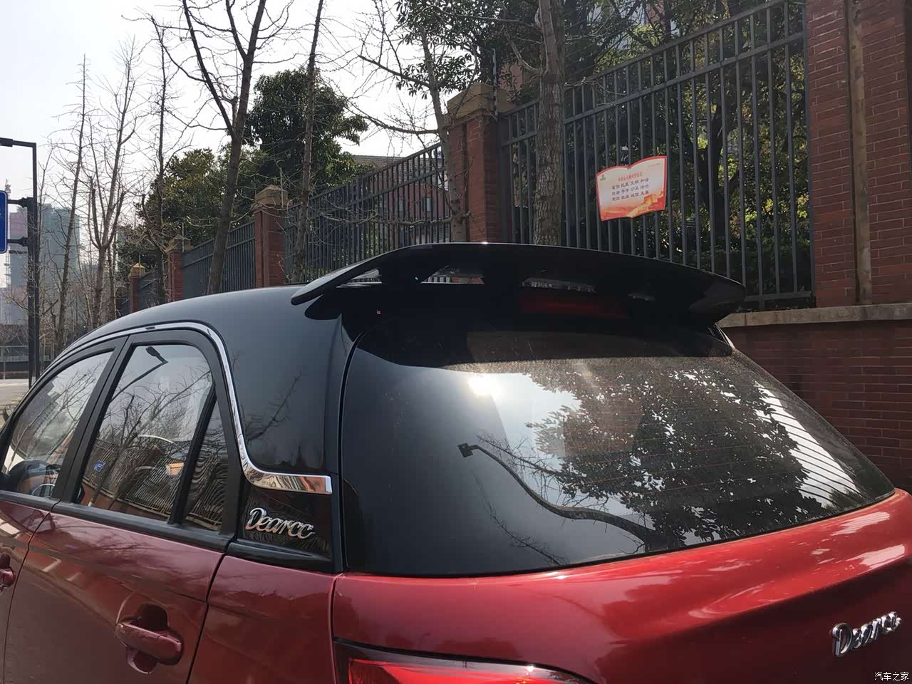 外观就不用说了,我的心头爱。一款车好不好看,很大程度就由他的整车的轮廓决定的。小咖的轮廓我就比较喜欢,方正的外在,单细节处理不至于很刚硬,所以我觉得既适合男人开也适合女人开。双拼色的车身,很特别,比较时尚。我买的是红黑的配色,很经典,让人想到AC国米。前脸是一体式的,很有科技感。大灯的造型也不错,加上LED的灯眉,很抢眼。