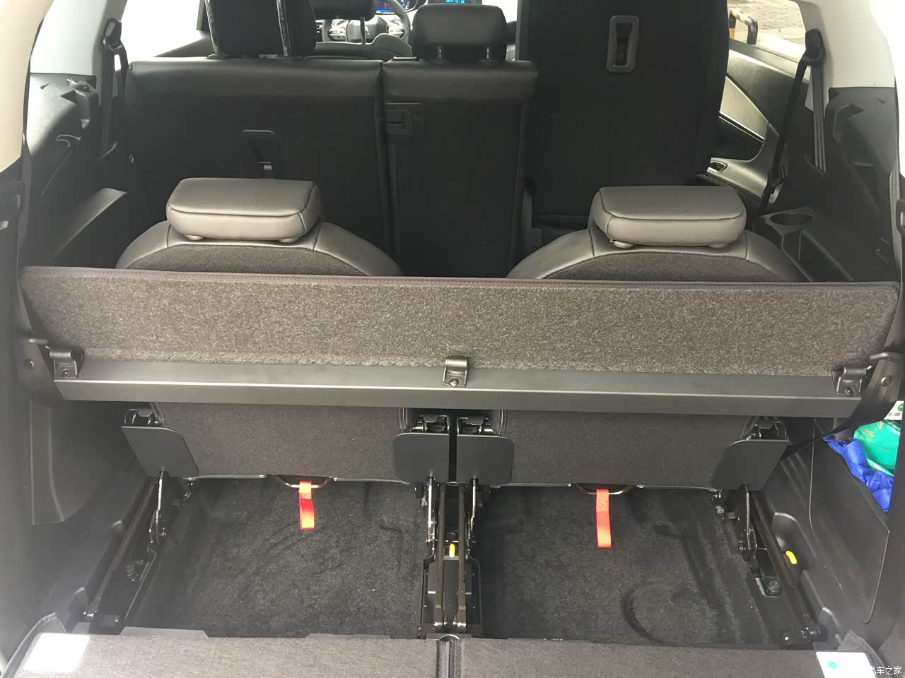 不打开第三排座椅的情况下后备箱很大。第三排俩座椅都打开坐人的话就没啥空间了,只能放两三个背包,但是打开的第三排座椅下边也有空间可放东西。后备箱的那条横梁挺麻烦的,打开或者关上第三排座椅都要调整那个横梁的位置。后备箱还有两块可折叠的硬垫子,打开后备箱的时候可以把这个垫子完全打开,坠到车下面来,这样裤子就不会被车屁股上的灰尘弄脏。