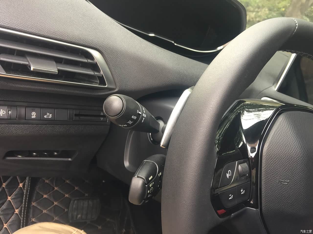 方向盘后边控制灯和定速巡航的拨杆。