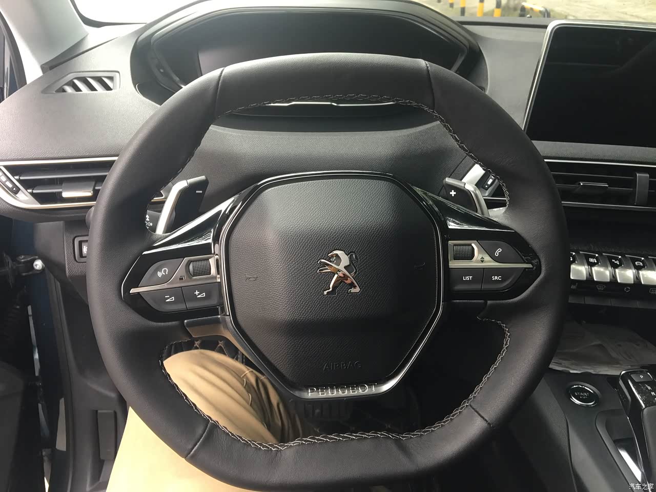 方向盘真皮的,有换挡拨片,全液晶仪表盘。