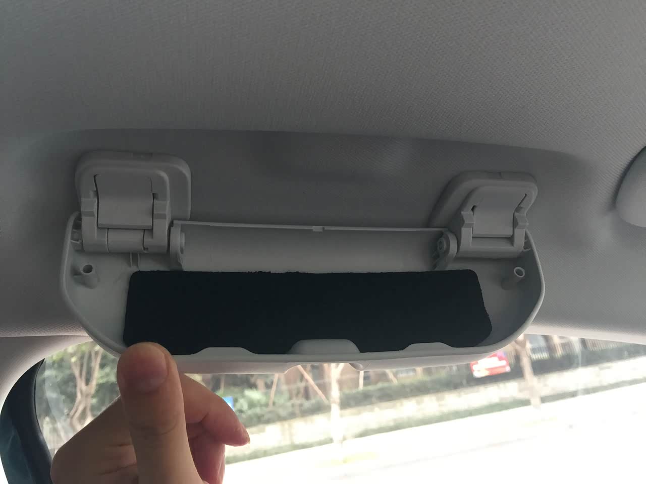 主驾驶头上有装墨镜的盒子,但是不大,镜片很大那种墨镜装不进去。